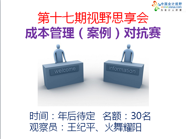 第十七期视野思享会来个好玩的,成本管理(案例)对抗赛,流程如下: