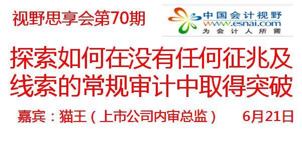 本期邀请分享的嘉宾是2001年开始便加入视野一起成长的资深版主 猫王,从事内审13年,拥有各类A,目前系某上市公司审计总监。